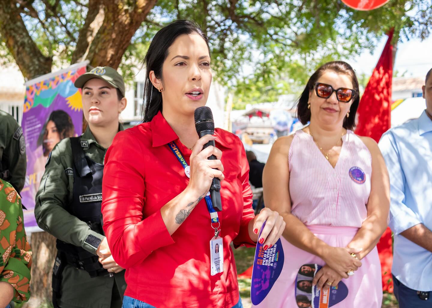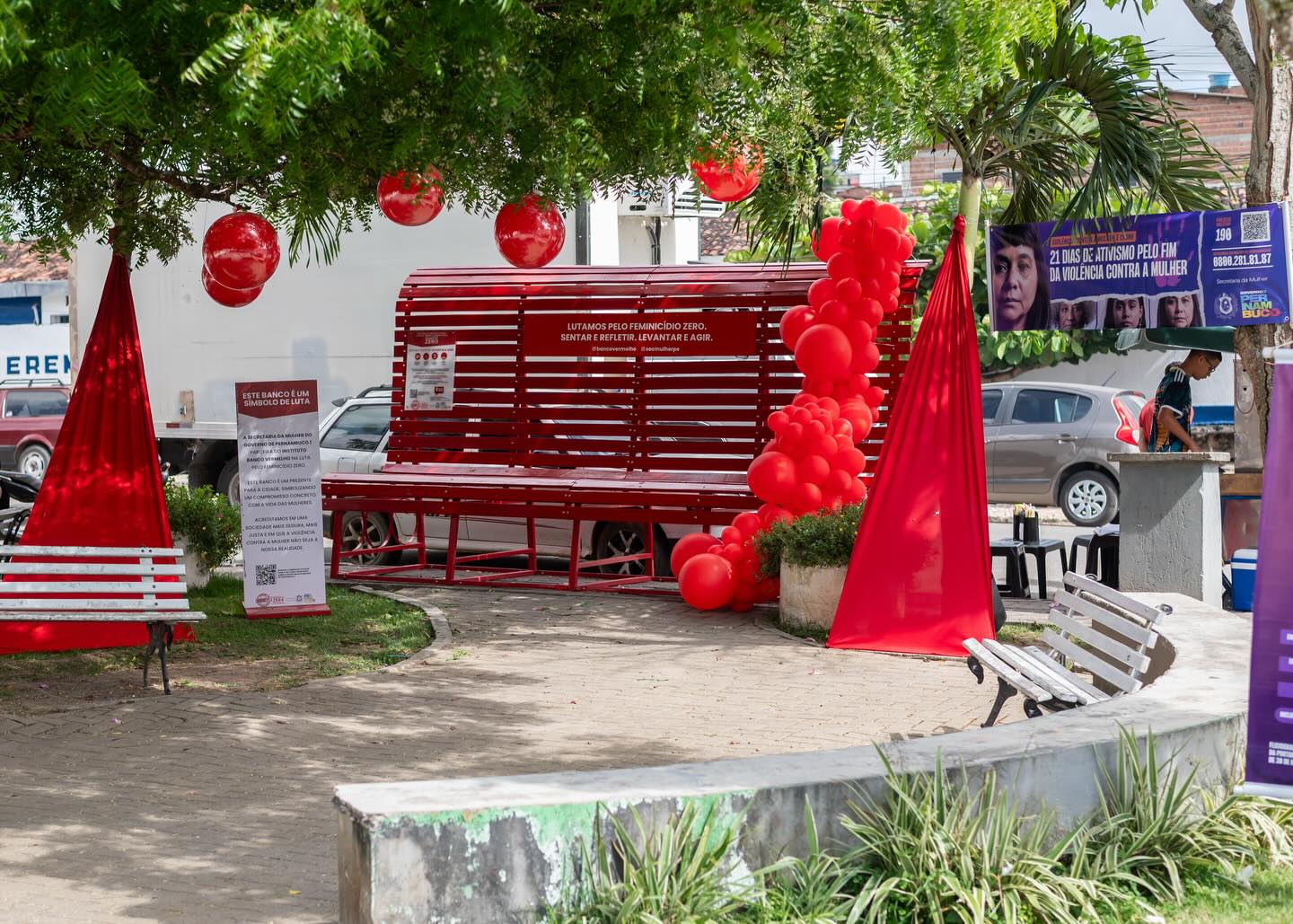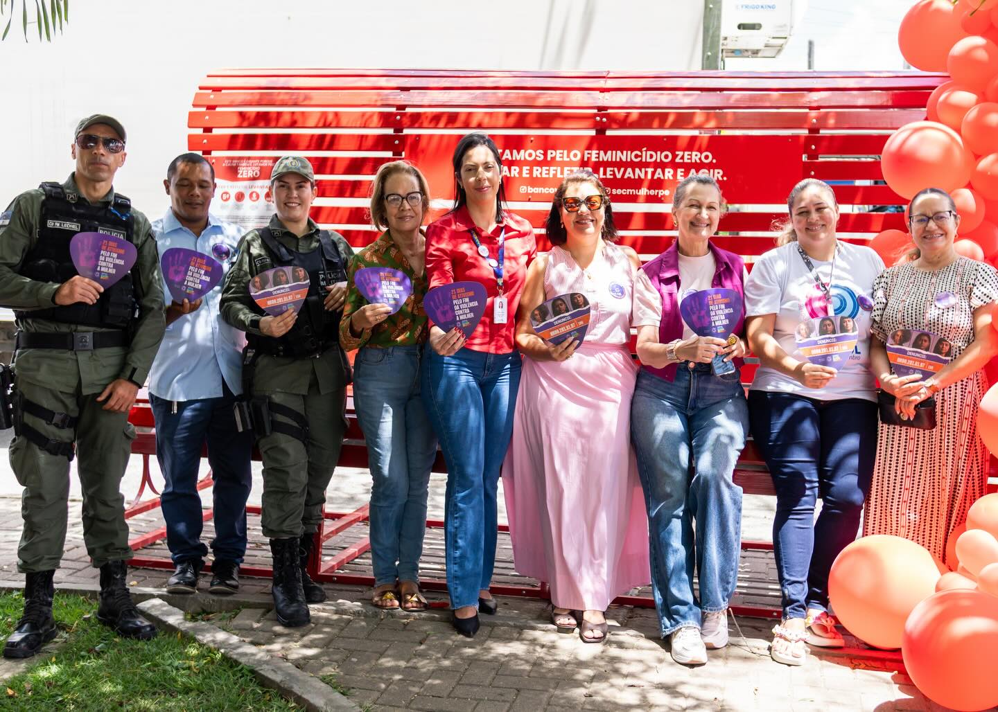 Também celebramos a instalação do Banco Vermelho, que simboliza nossa luta diária contra qualquer forma de violência contra a mulher.